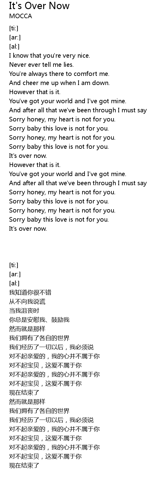 | [00:50.12] | Sorry honey, my heart is not for you. |