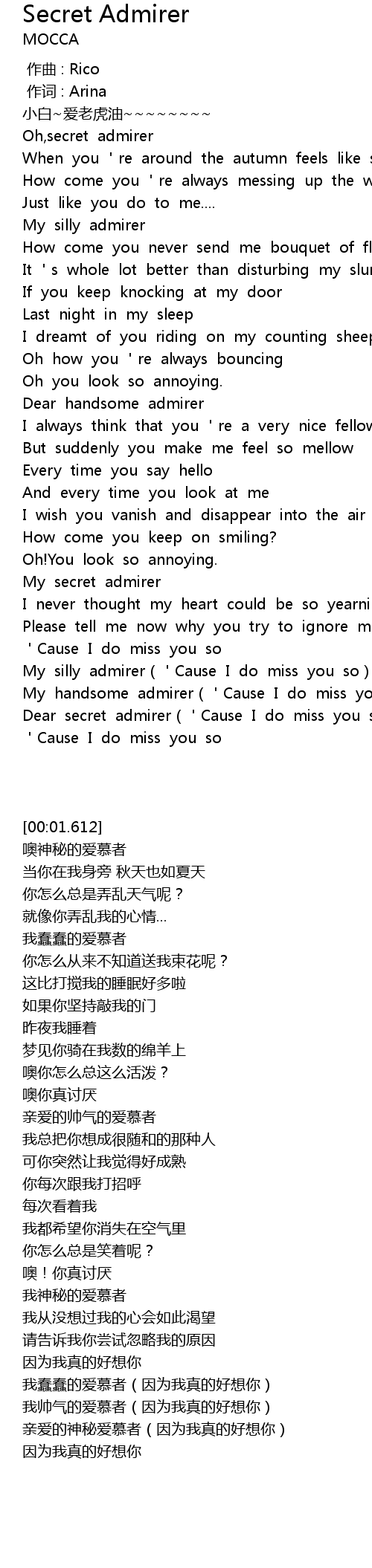 | [02:24.261] | My secret admirer |