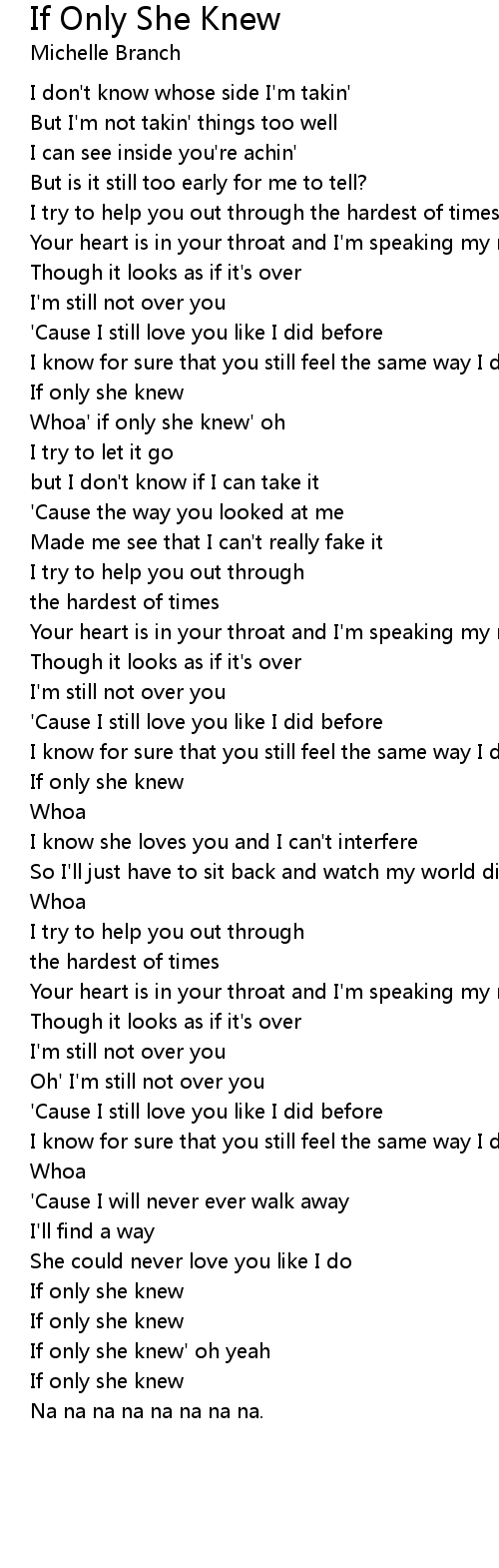 Whoa' if only she knew' oh |
