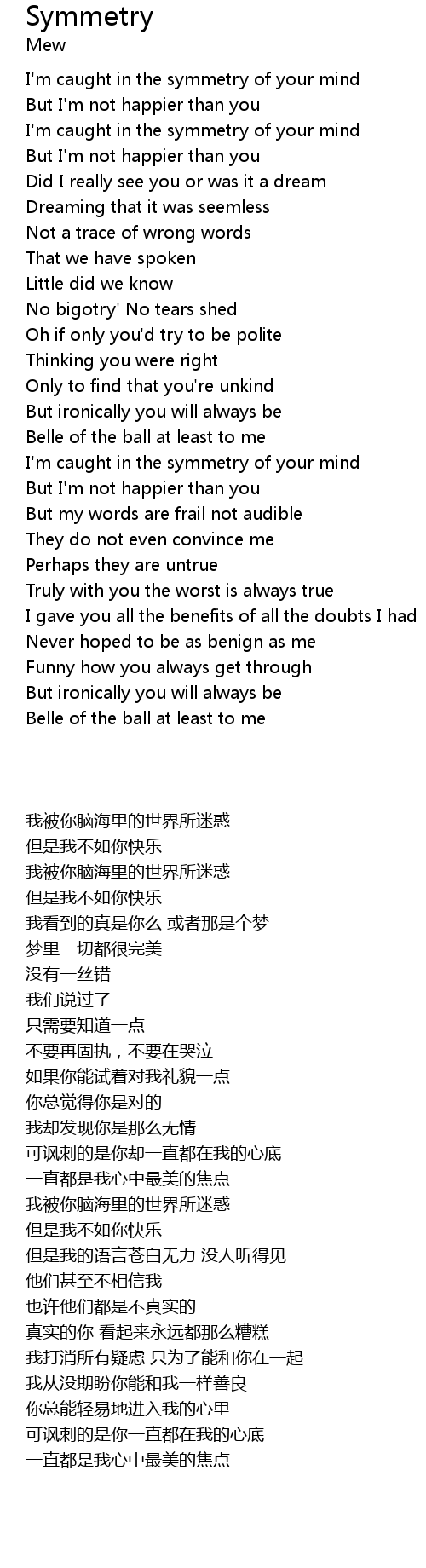 | [00:33.540] | I'm caught in the symmetry of your mind |