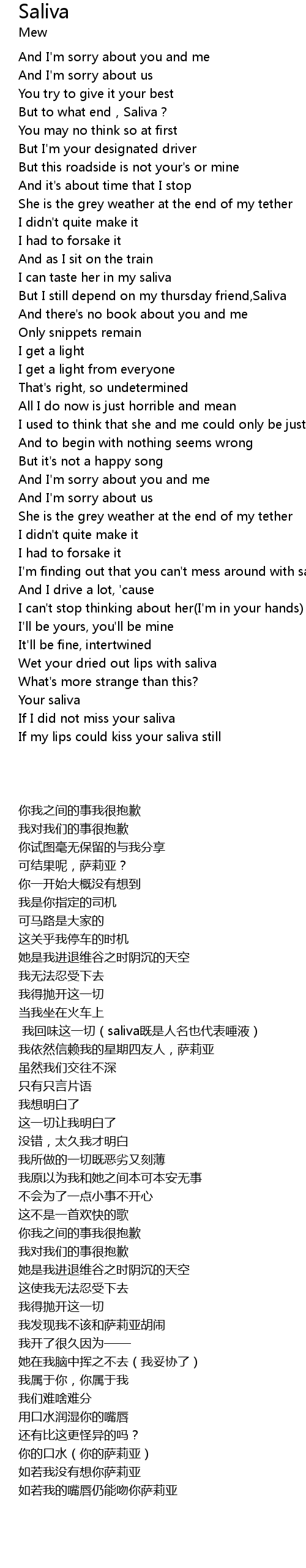 | [03:39.95] | Your saliva |