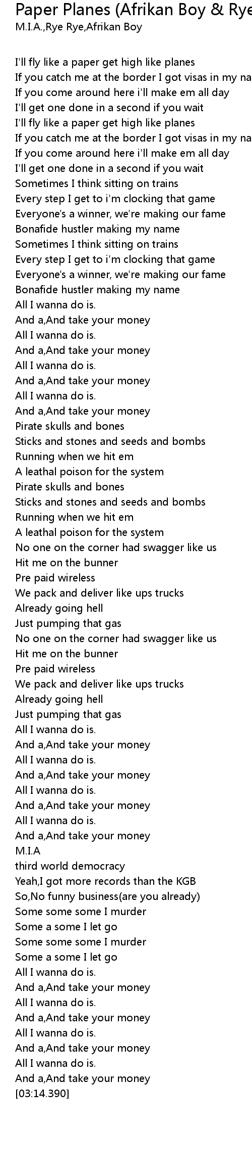 | [00:15.860] | I' ll fly like a paper get high like planes |