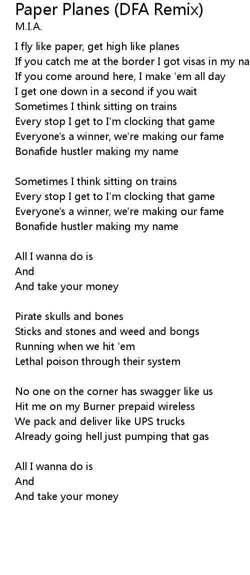 I fly like paper, get high like planes |