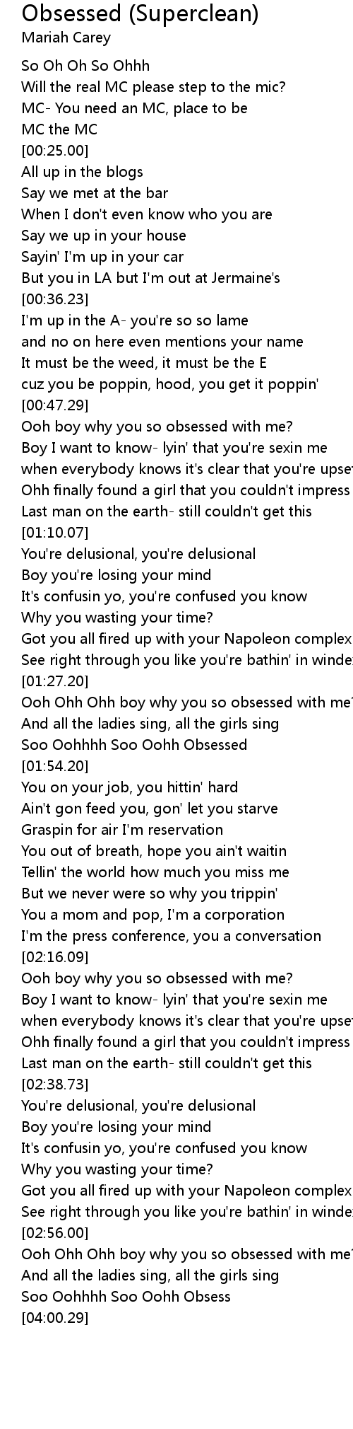 Ooh Ohh Ohh boy why you so obsessed with me? |