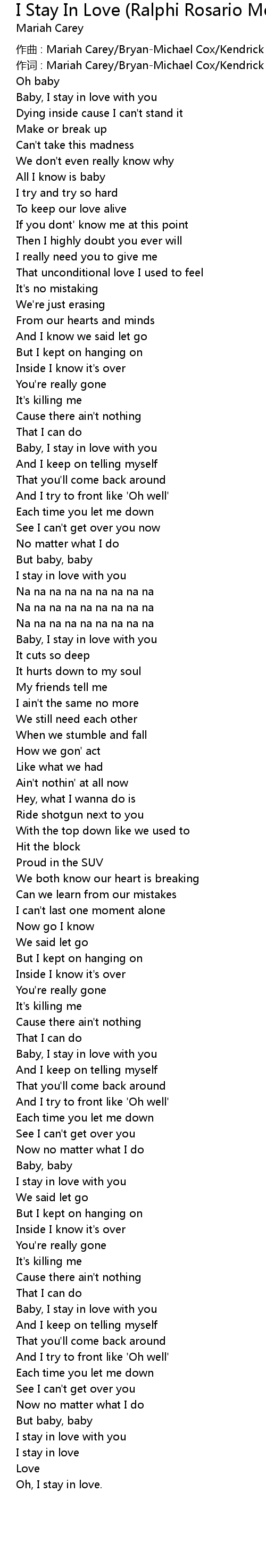 | 作词 : Mariah Carey/Bryan-Michael Cox/Kendrick Dean/Adonis Shropshire | |
