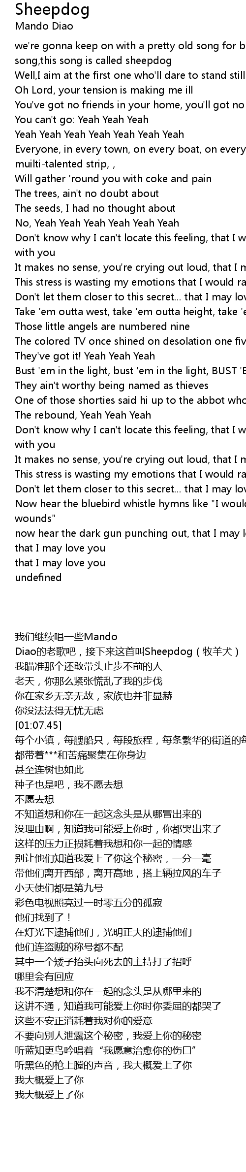 | [00:00.05] | we're gonna keep on with a pretty old song for being a Mando Diao's song,this song is called sheepdog |
