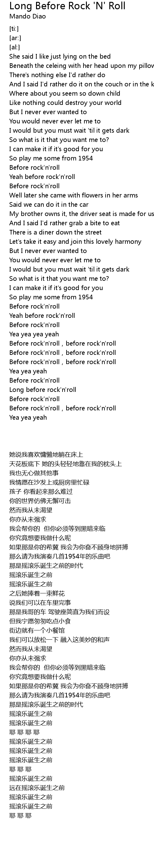 | [02:36.22] | Before rock'n'roll,before rock'n'roll |