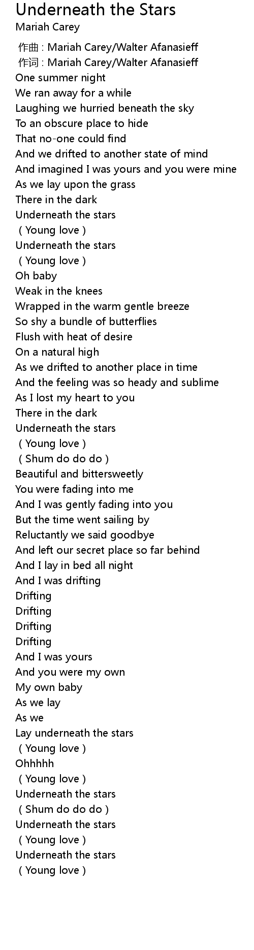 | [00:01.00] | 作词 : Mariah Carey/Walter Afanasieff |