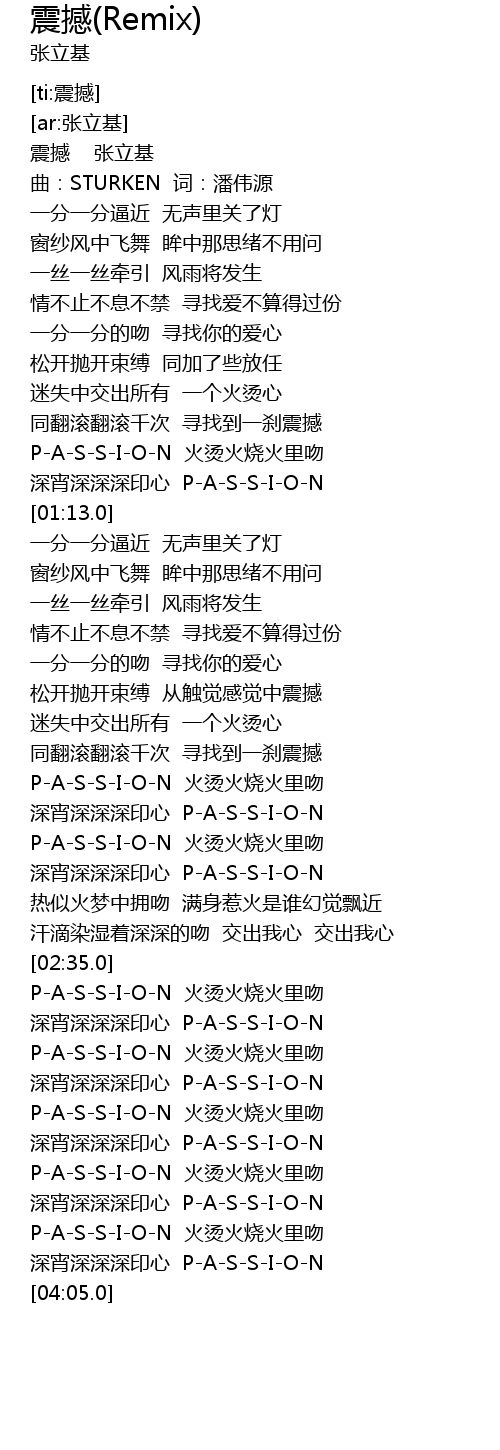 | [03:05.0] | P-A-S-S-I-O-N 火烫火烧火里吻 |