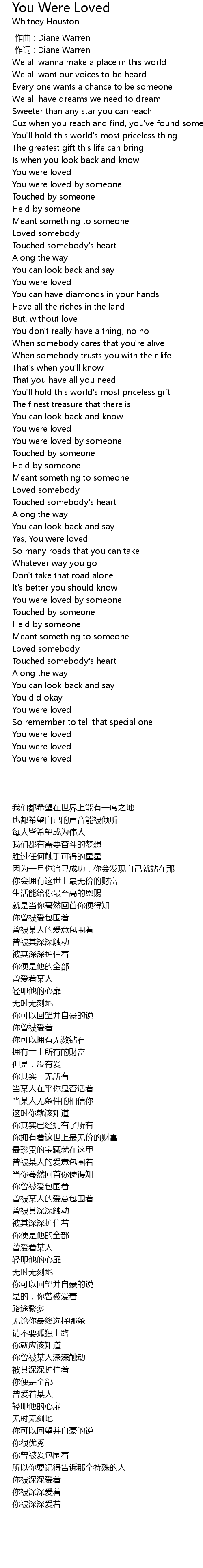 | [00:00.08] | 作词 : Diane Warren |