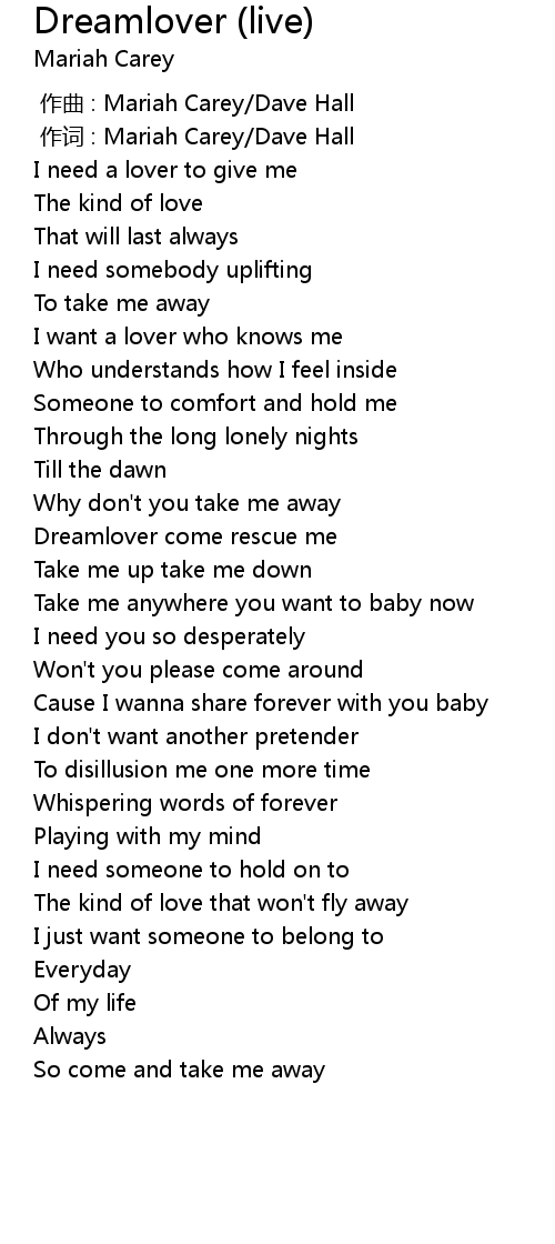 | [00:01.00] | 作词 : Mariah Carey/Dave Hall |