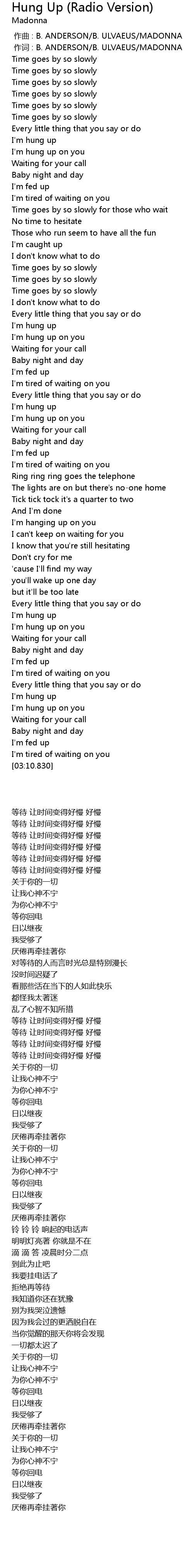 | [03:01.520] | Waiting for your call |