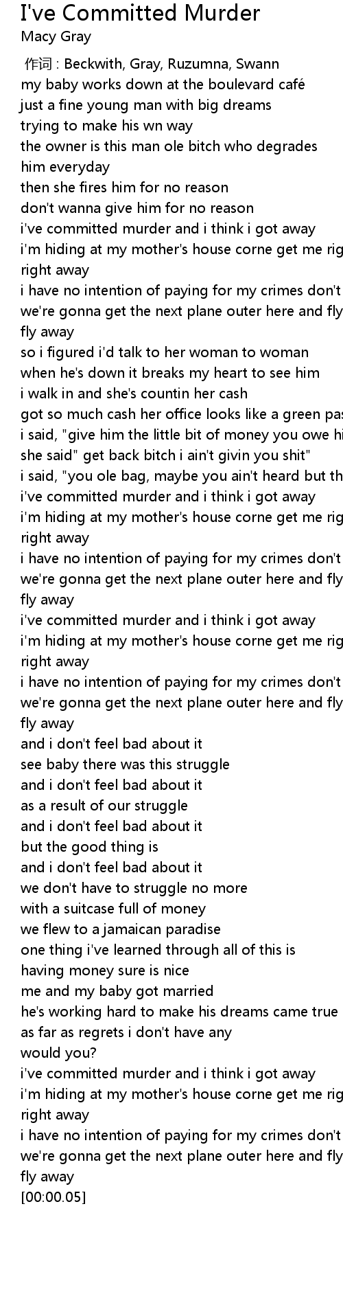 | [02:51.89] | i' ve committed murder and i think i got away |