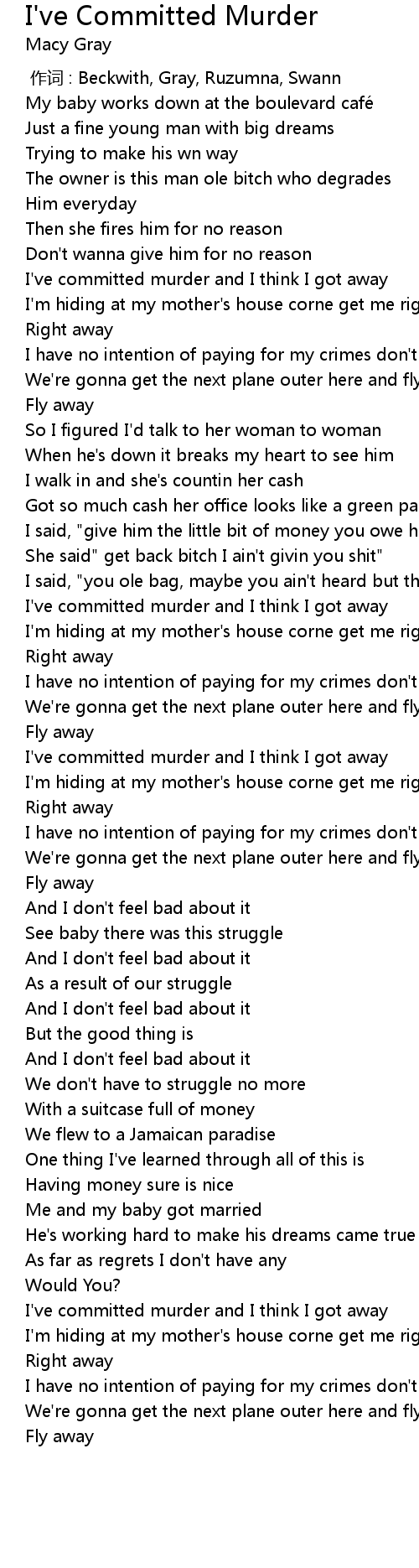 | [00:45.10] | I've committed murder and I think I got away |
