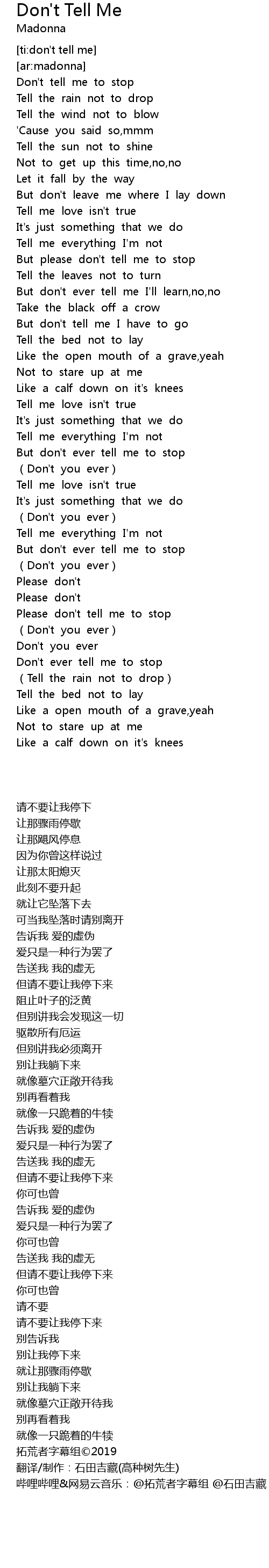 | ti: don' t tell me | |