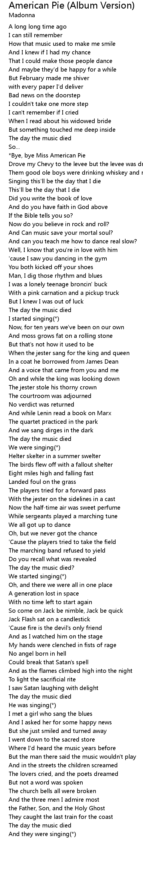 *Bye, bye Miss American Pie |