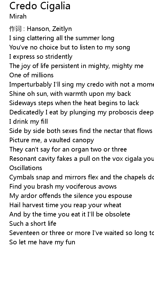 | Imperturbably I' ll sing my credo with not a moment' s falter | |