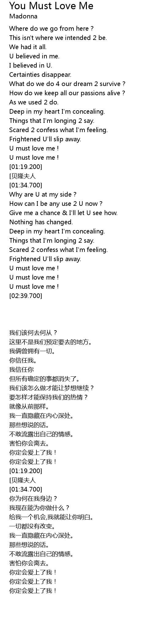 | [02:22.440] | U must love me ! |