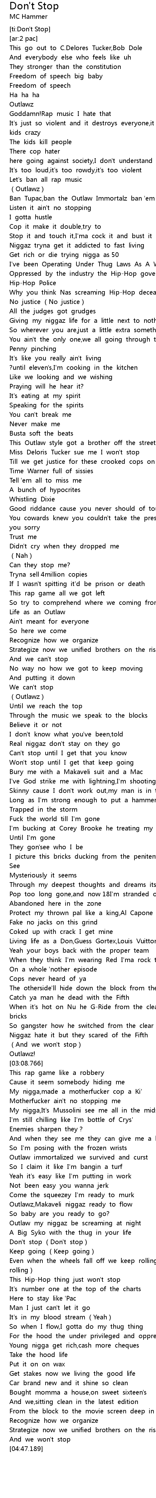 | [00:50.483] | Oppressed by the industry the HipHop government ?? by the HipHop Police |