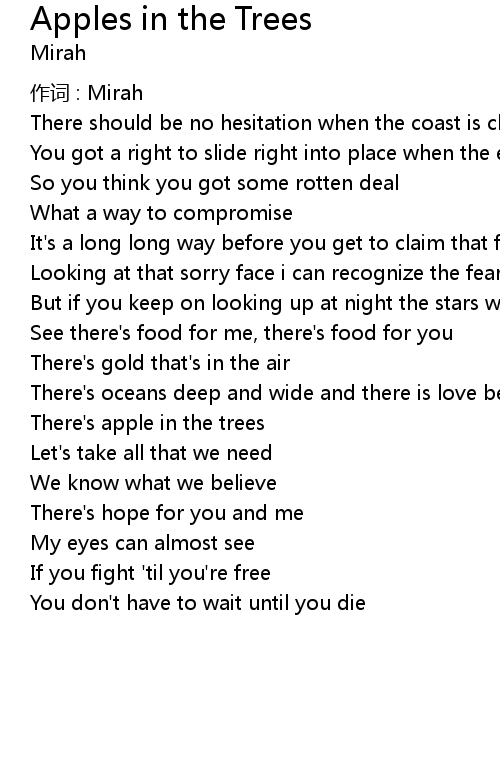 | Song | Apples in the Trees |