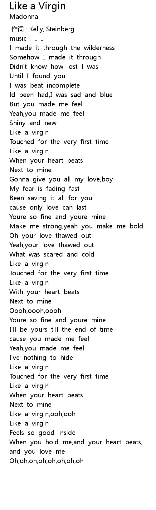 | [02:45.59] | Like a virgin, ooh, ooh |