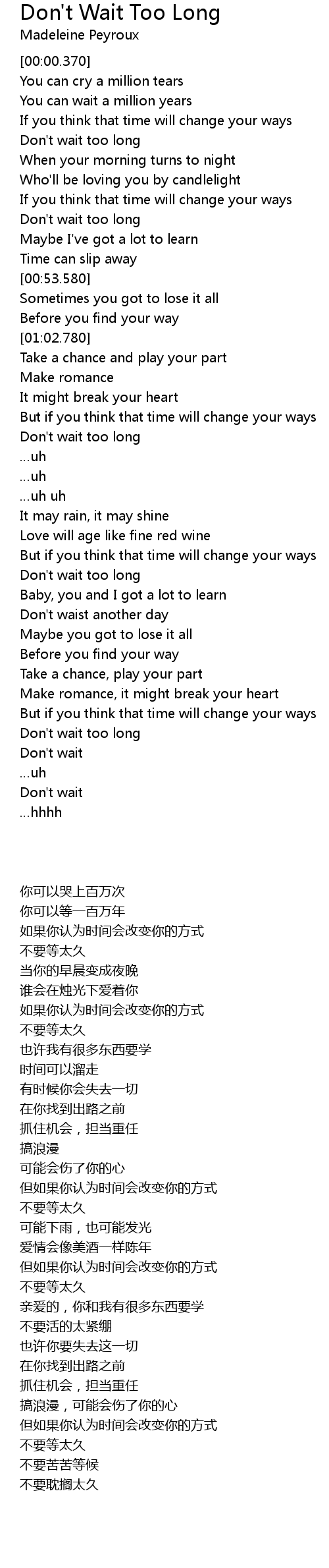 | [00:24.100] | Don' t wait too long |