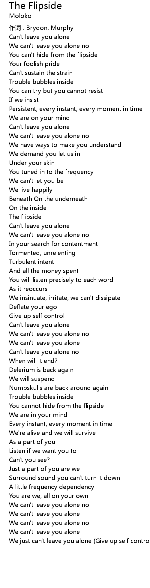 | Can' t leave you alone no | |