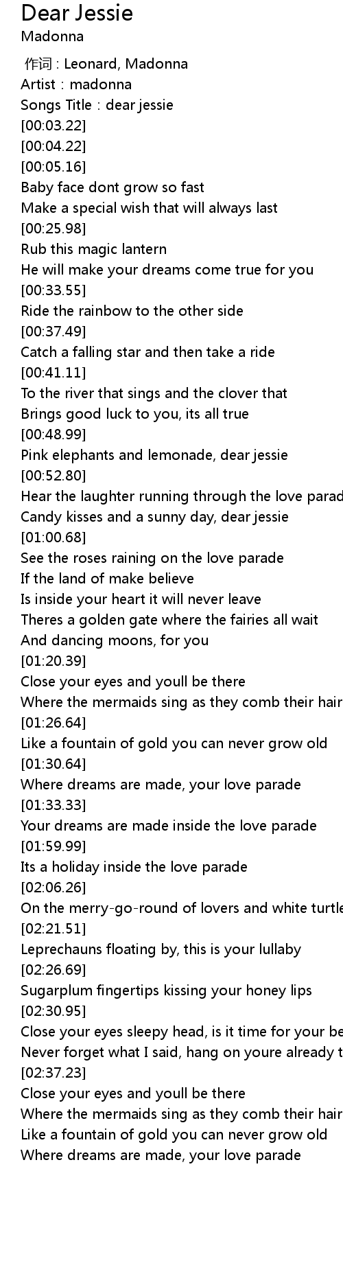 | [00:02.16] | Songs Title:dear jessie |