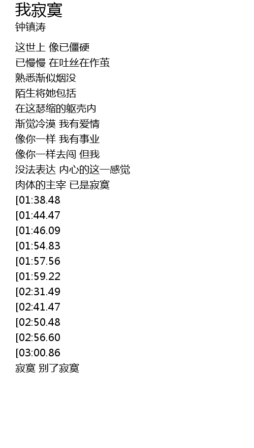 | [03:35.43][02:41.47] | 这寂寞 令我苦令我哀 在这刻 |