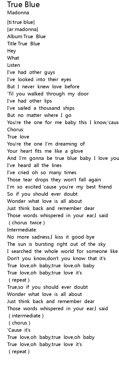 | [01:00.67] | And I'm gonna be true blue baby I love you |