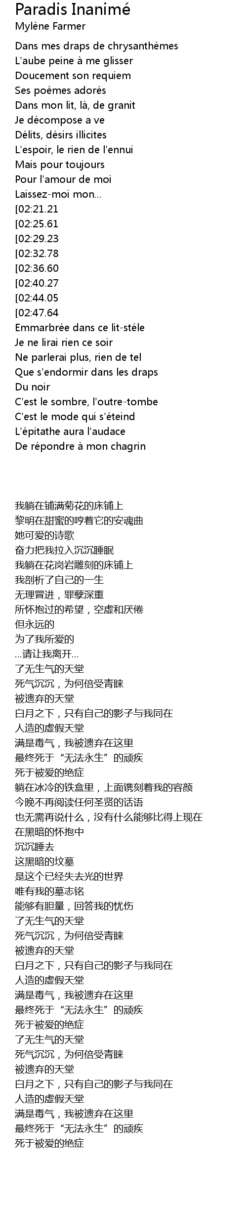 | [03:20.91][02:21.21][01:15.33] | Paradis inanimé |
