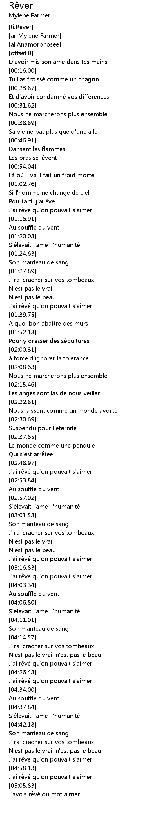 | [05:10.13] | J'avois rêvé du mot aimer |