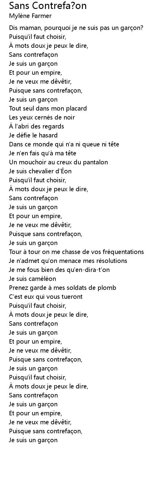| Song | Sans Contrefa?on |