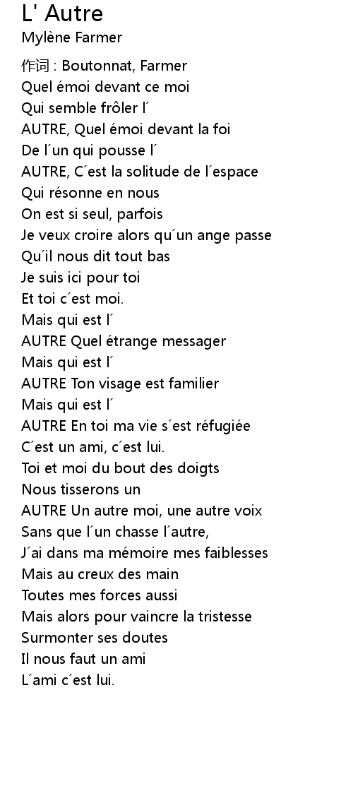 | 作词 : Boutonnat, Farmer | |