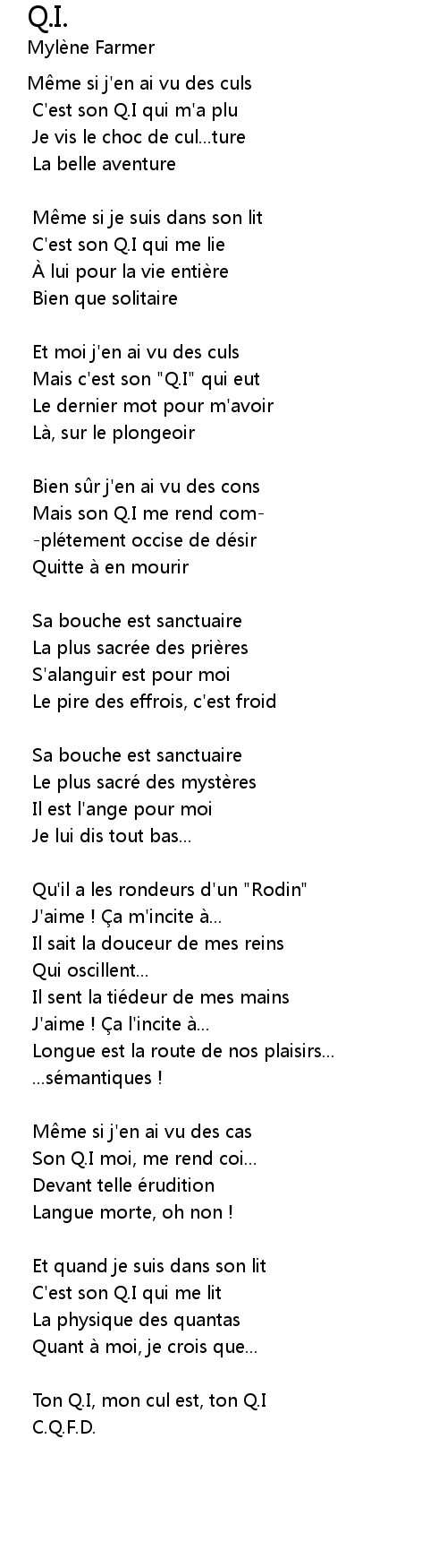 | C'est son Q.I qui me lit | |