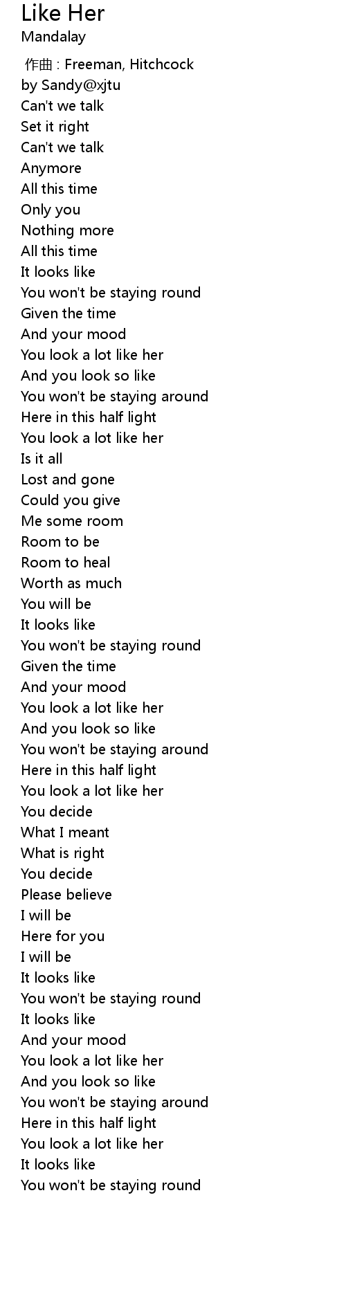 | [02:52.88] | You look a lot like her |