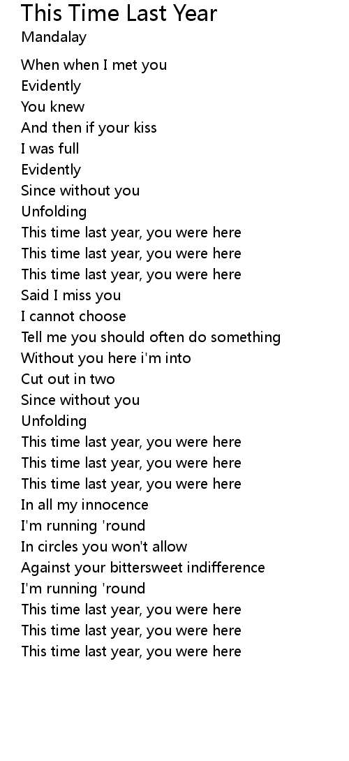 | This time last year, you were here |