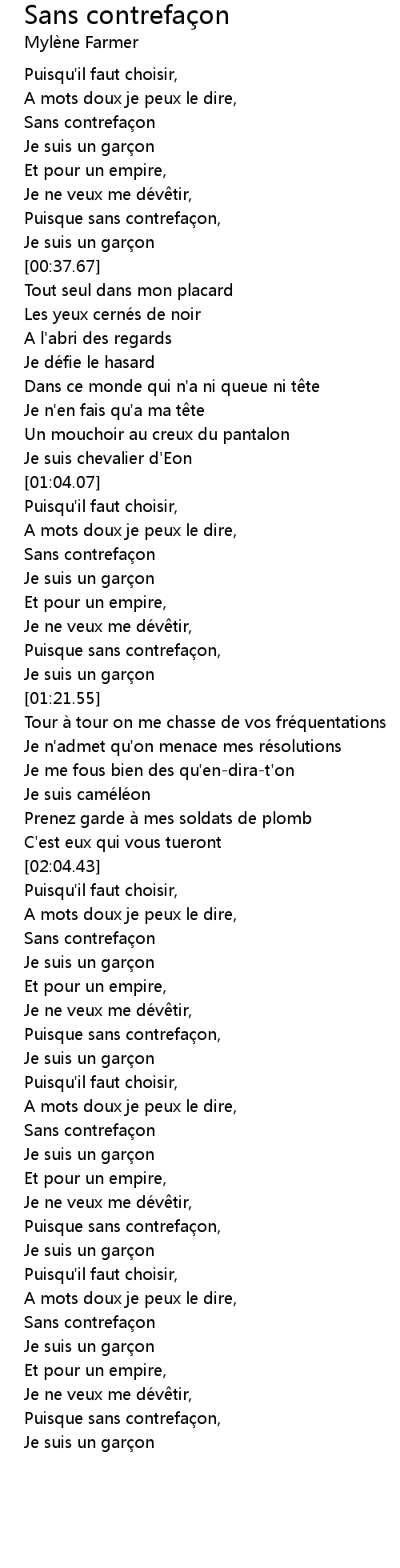 | [01:37.63] | Tour a tour on me chasse de vos fre quentations |