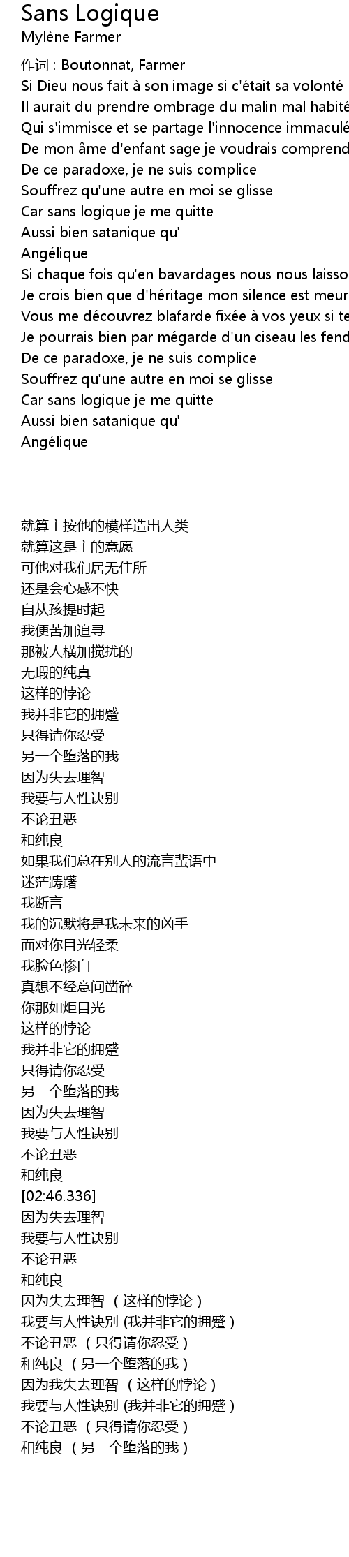 | 作词 : Boutonnat, Farmer | |