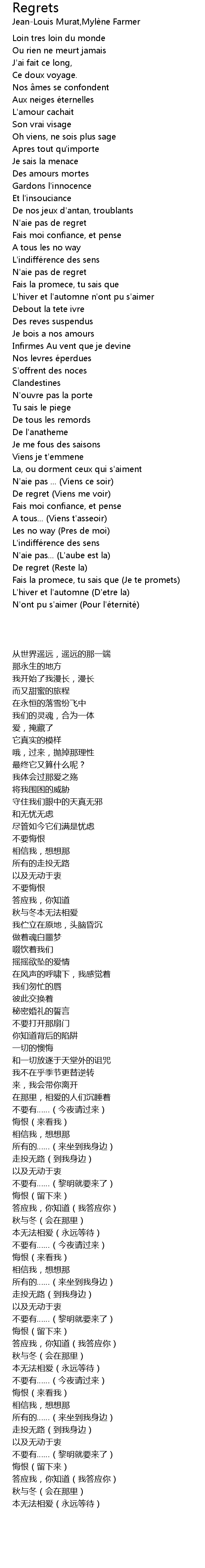 | De regret (Viens me voir) | |