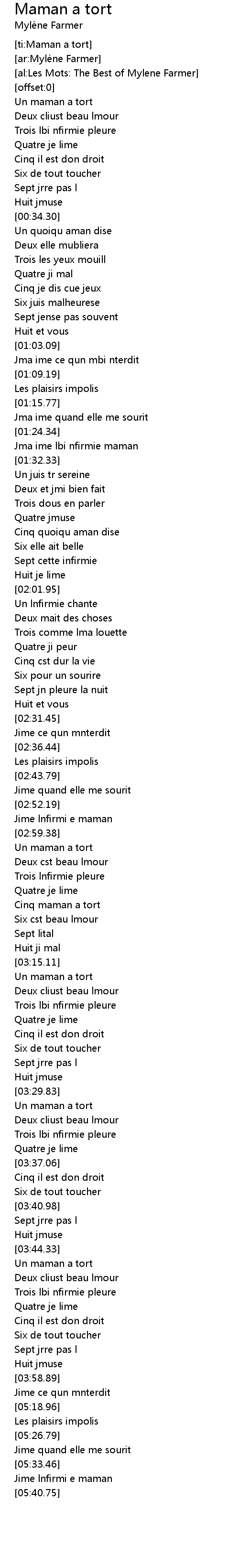 | [03:01.72] | Un maman a tort |