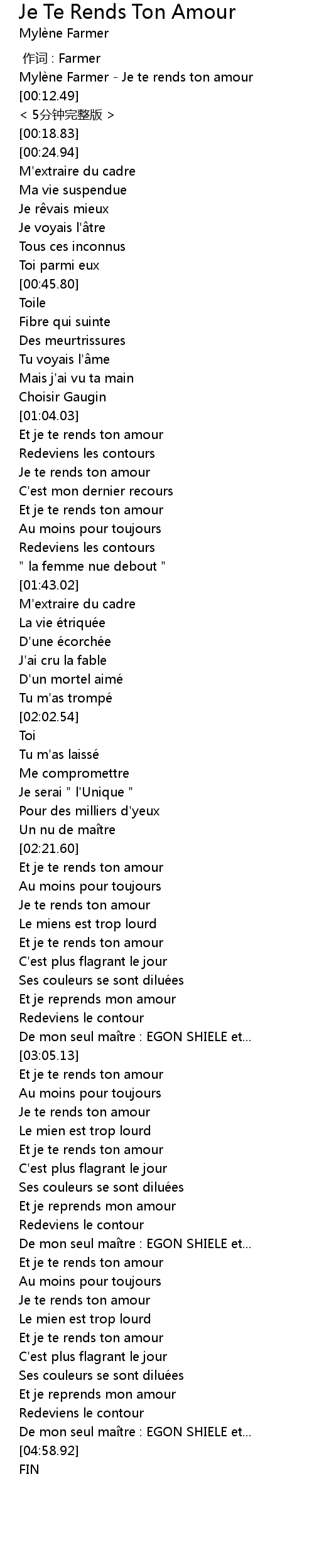| [00:05.27] | Mylène Farmer - Je te rends ton amour |