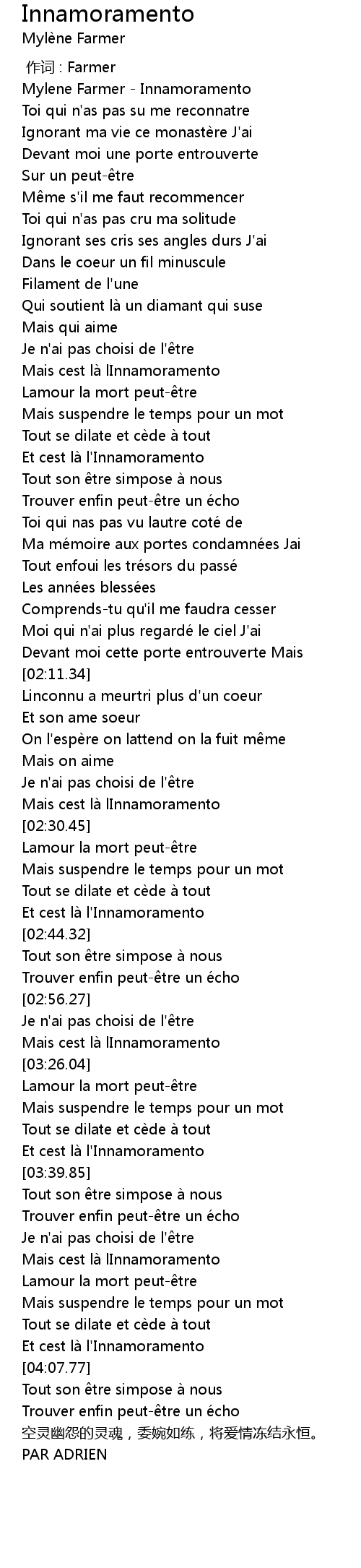 | [03:52.36] | Mais cest là lInnamoramento |
