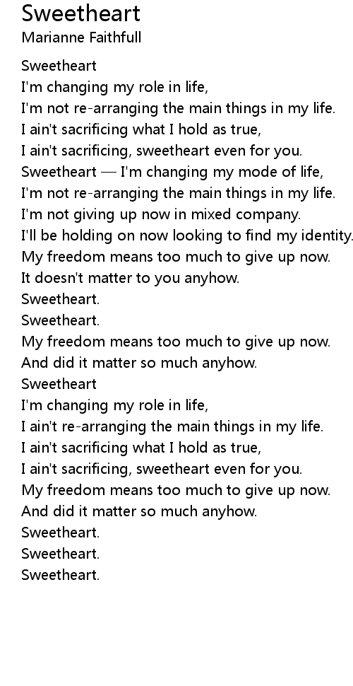 | Sweetheart I' m changing my mode of life, | |