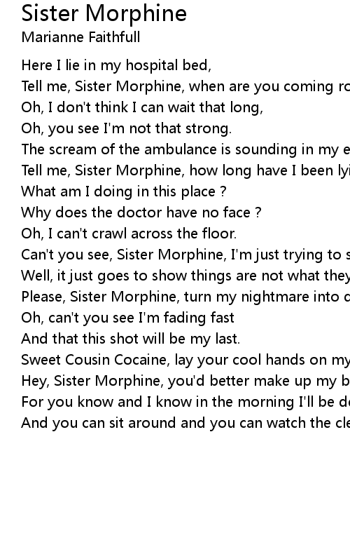 Please, Sister Morphine, turn my nightmare into dreams. |