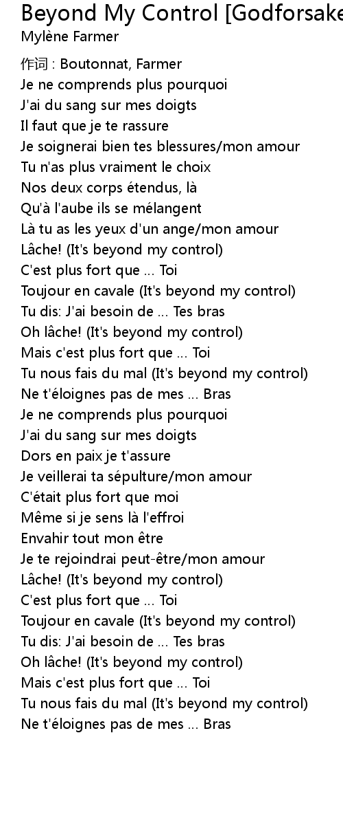 | Tu nous fais du mal It' s beyond my control | |