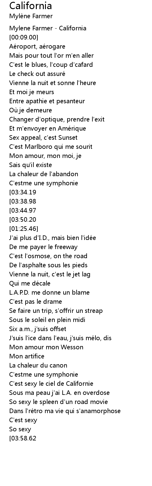 | [02:12.34] | C' est sexy le ciel de Californie |