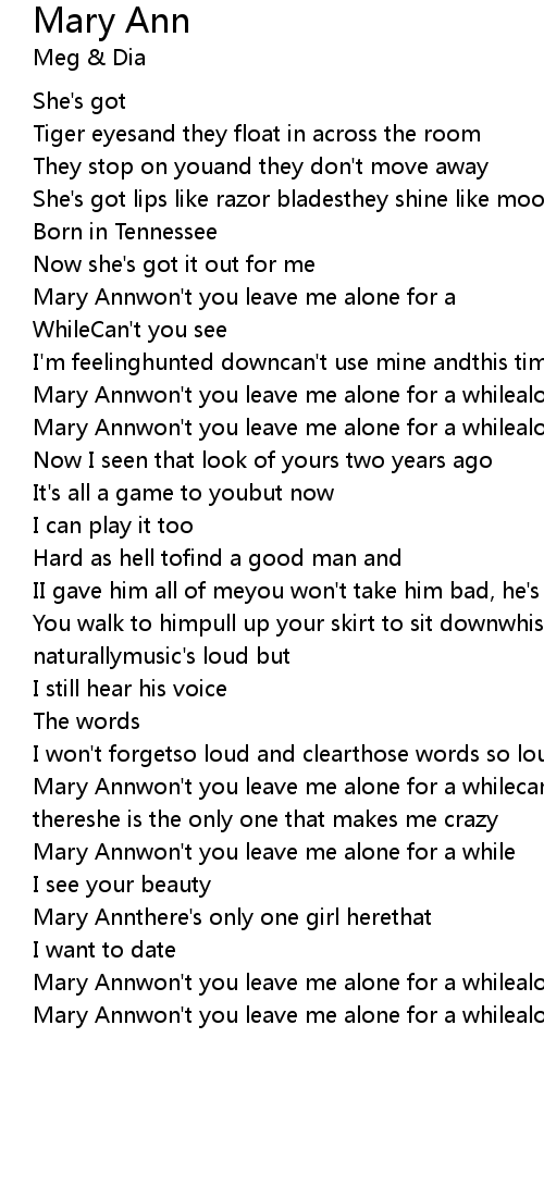 | Mary Annwon't you leave me alone for a whilealone for a while |