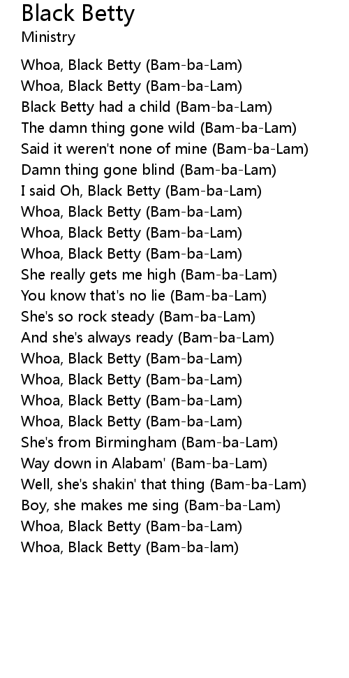 | I said Oh, Black Betty (Bam-ba-Lam) | |