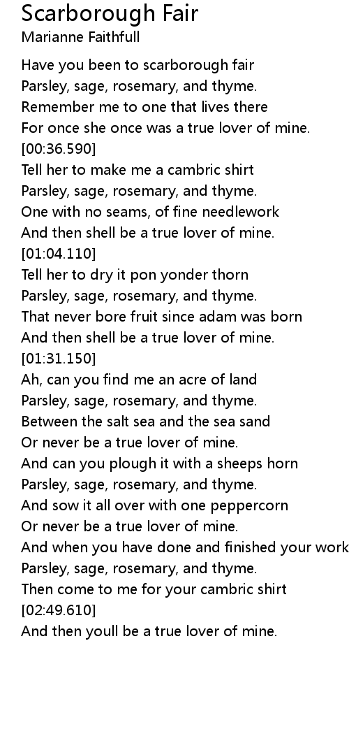 | [00:16.120] | Parsley, sage, rosemary, and thyme. |